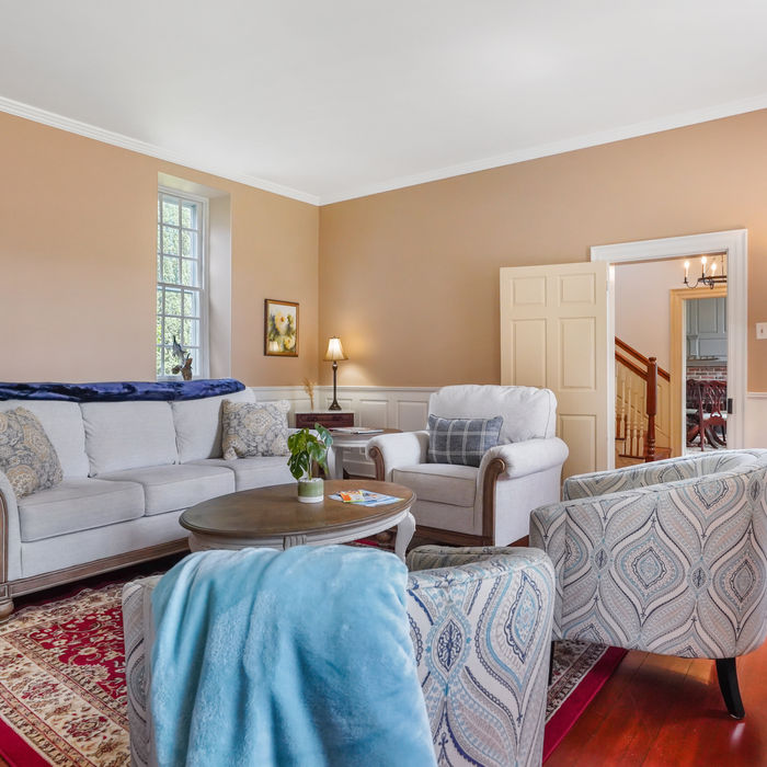 Guests have full private access to the Manor House, grounds, and all indoor areas. Entry is through multiple doors including the original 1710 front door.