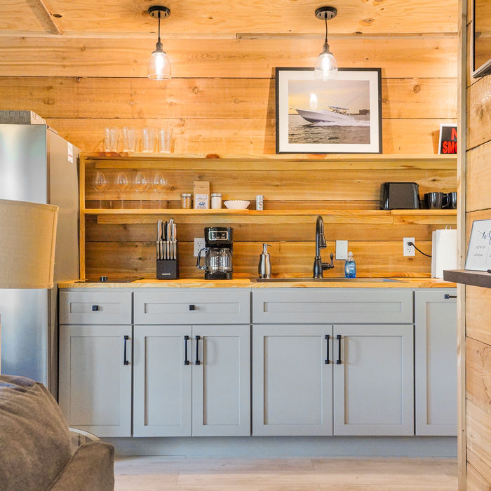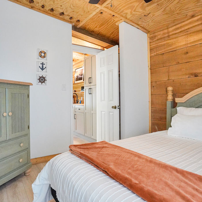 At this woodsy 2BR cottage on the shoreline of Pungoteague Creek, wake up to views of the water and open the full-height roll-up wall to let in the breeze. This space blends rustic charm with clean design—think custom cabinetry, pendant lights, and a cozy indoor-outdoor vibe for dreamy days outside and starry nights. Wander our 500+ acre working farm, and explore local attractions (winery and wharf are a short drive away).